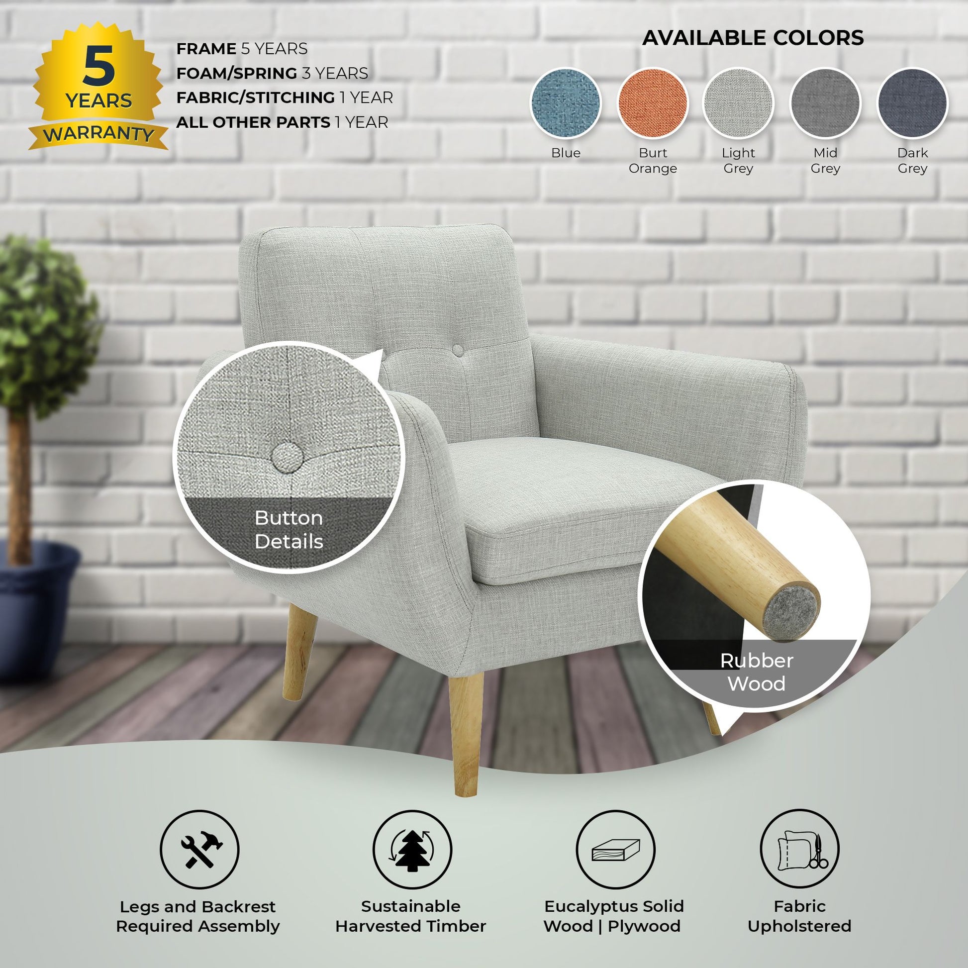 Dane Single Seater Fabric Upholstered Sofa Armchair Set of 2 - Light Grey