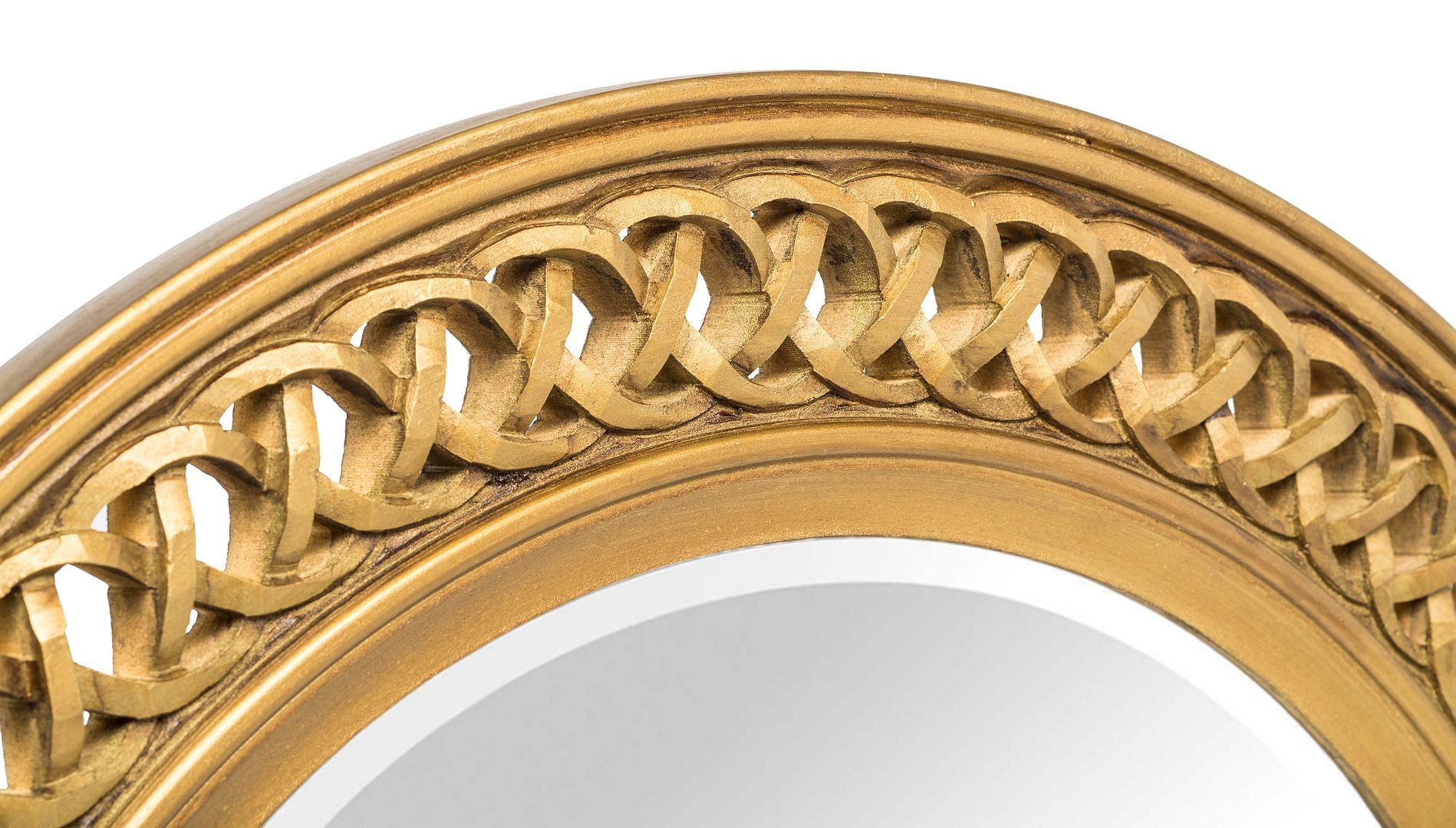 Bring an element of the Vintage charm into your Home with this Decorative Wooden Round Wall Mirror in Rustic Gold Finish. Handmade by masterful artisans, this piece features the gorgeous cross design engraved in stunning detail. The Round design further accentuates serenity as this Bevelled Edged Mirror fits perfectly in a Chic Classical Interior.