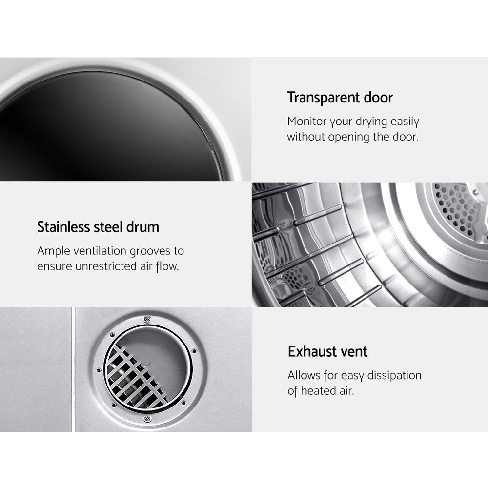 Devanti 5kg Tumble Dryer Fully Auto Wall Mount Kit Clothes Machine Vented White