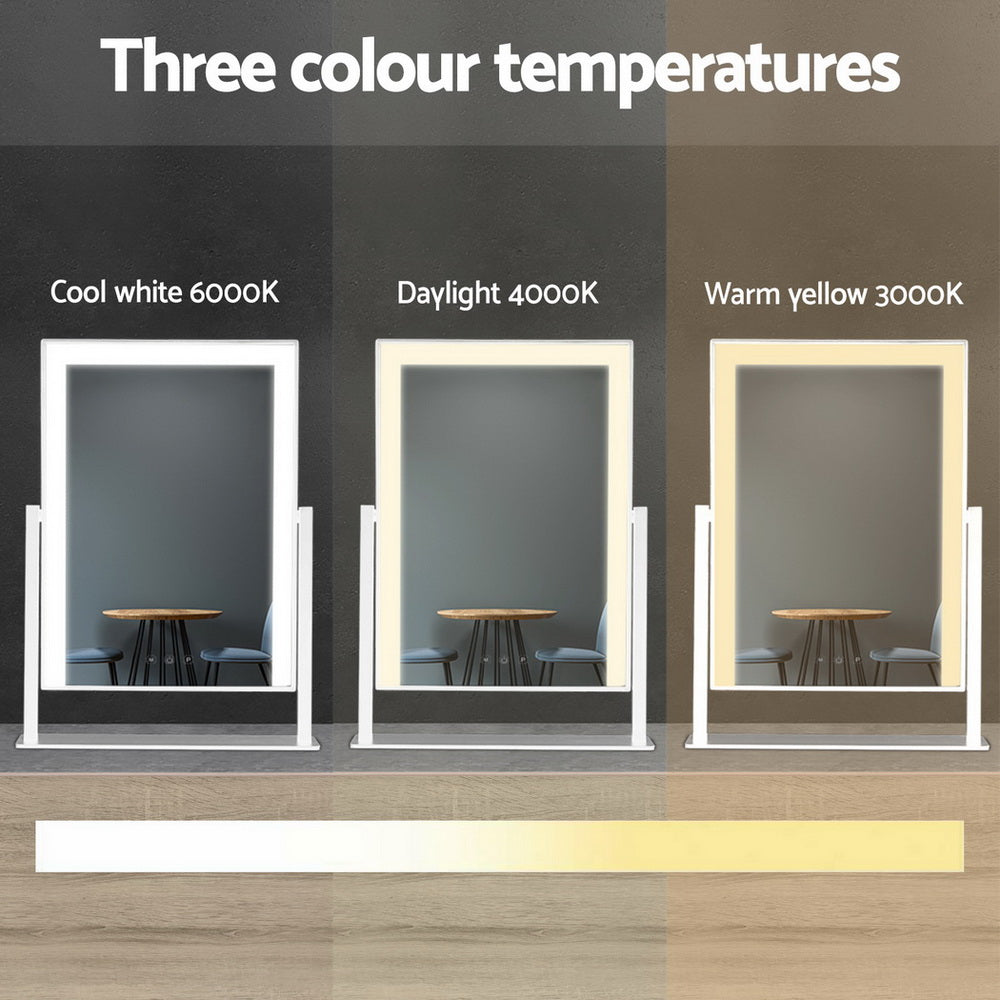 Fairest beauty looks even better with our Embellir Standing Makeup Mirror. Looking very much like a celebrity makeup mirror, our mirror features nine LED bulbs on its slim 2.5cm thick frame. In fact, the entire mirror is almost frameless. The lights can be adjusted for brightness and colour, from cool white to warm white with its touch control, offering a soft and ambient glow to complement your true image. Better still, the mirror is totally rotable and stands on an enlarged base for added stability. Mirror your exceptional countenance with this lovely Embellir Standing Makeup Mirror. Get yours today.