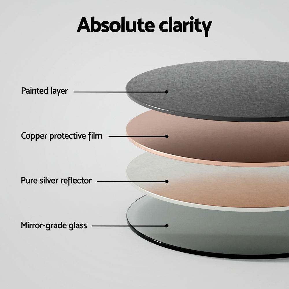 Elevate your home's ambiance with this stunning Embellir round wall mirror. Crafted with a beautiful wooden frame and boasting a premium 2.5cm thick mirror, it delivers exceptional clarity and reflects the quality of its construction. The exquisite details showcase the mirror's masterful craftsmanship, adding a touch of elegance to any space. Easy installation allows you to create a focal point in your living room, bedroom, hallway, or bathroom in no time.