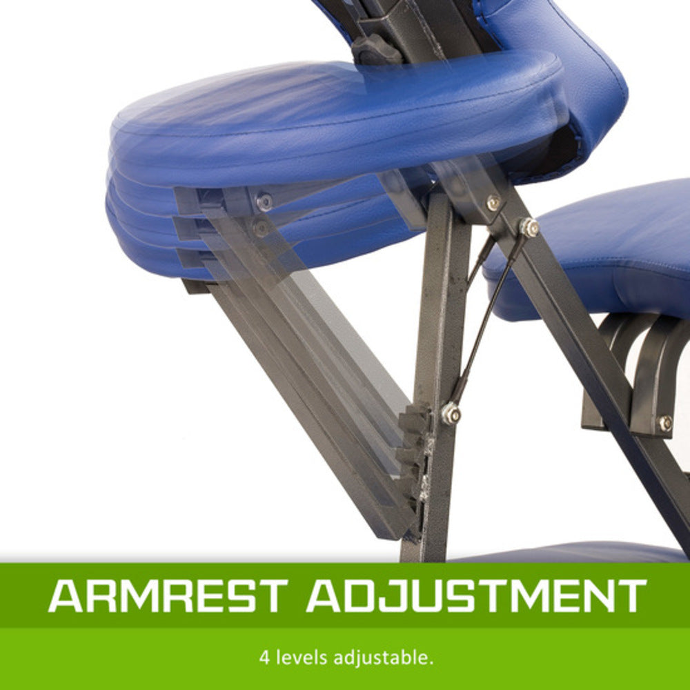 Its sturdy structure allows the table to support up to 500 Pounds. This portable massage chair can be adjusted without removing any parts. The chest pad is fully contoured for greater comfort for both men and women. The seat, armrest, chest pad and headrest are fully adjustable to accommodate user of different heights. The upholstery is comprised of two-inch thick high density small-cell foam padding and oil & water-proof vinyl. This massage table is ideal for students, new practitioners, and home users with limited budgets.