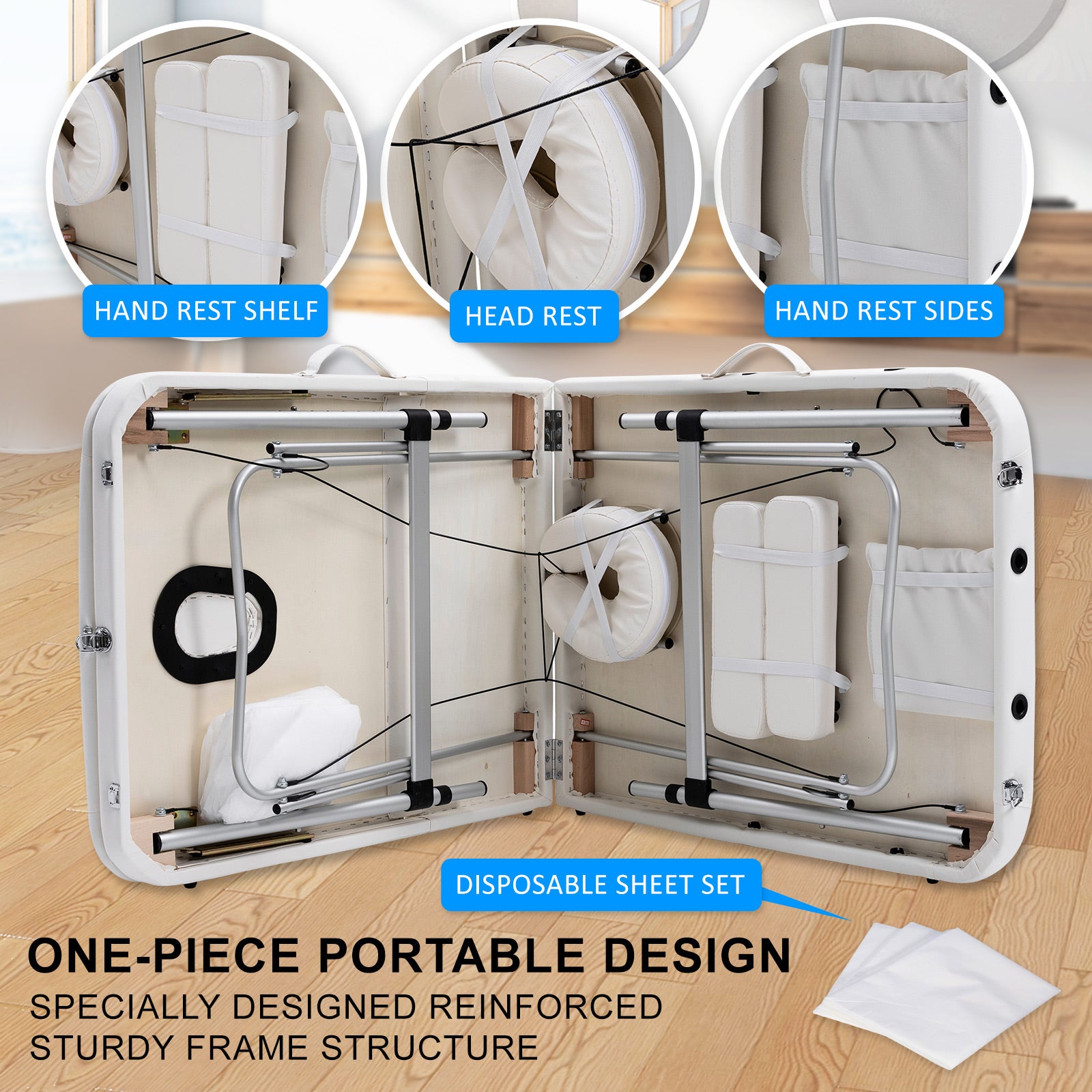 Forever Beauty Portable Beauty Massage Table Bed 3 Fold 75cm Aluminium Therapy Waxing - White
