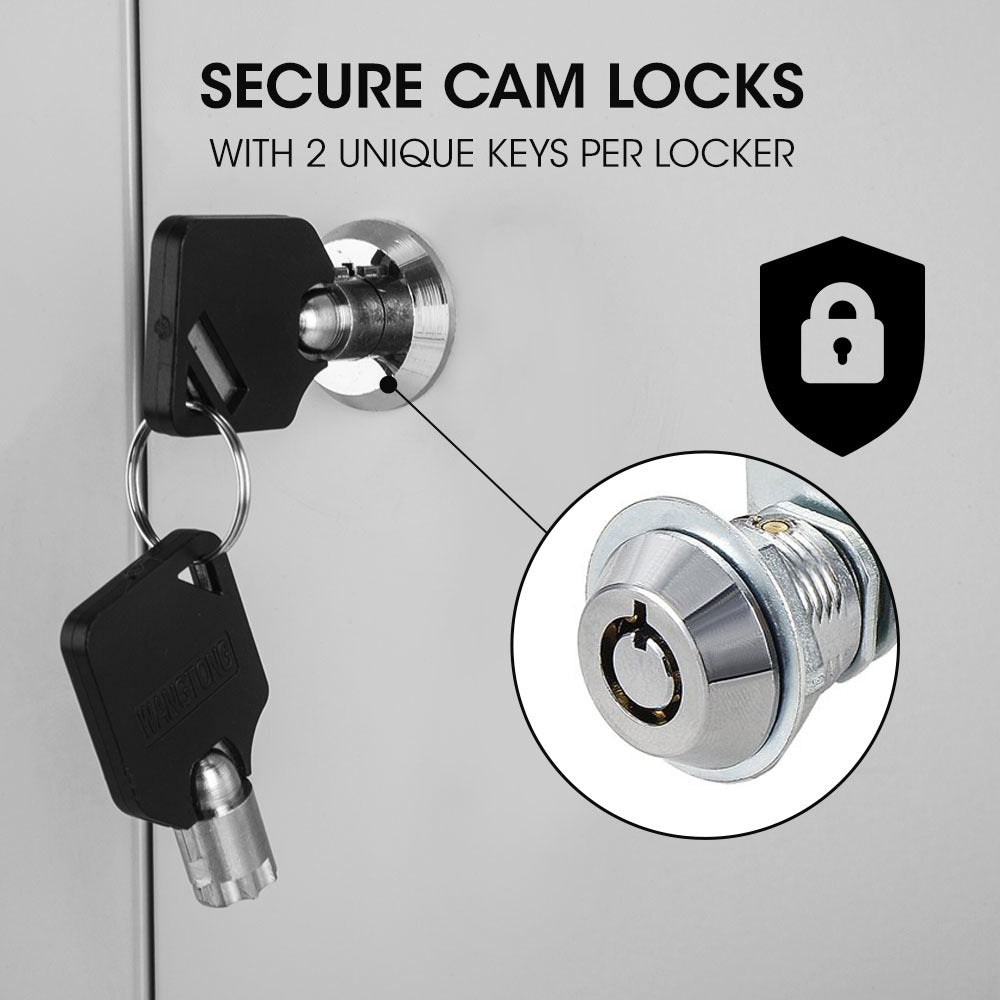Unlike others on the market, the FORTIA system features a superior tubular cam-lock system for optimal security. Each of the 12 lockers comes with 2 compatible keys per lock, identity label slots to name or number each locker for quick identification, as well as air vents to assure sufficient ventilation to inhibit mould.