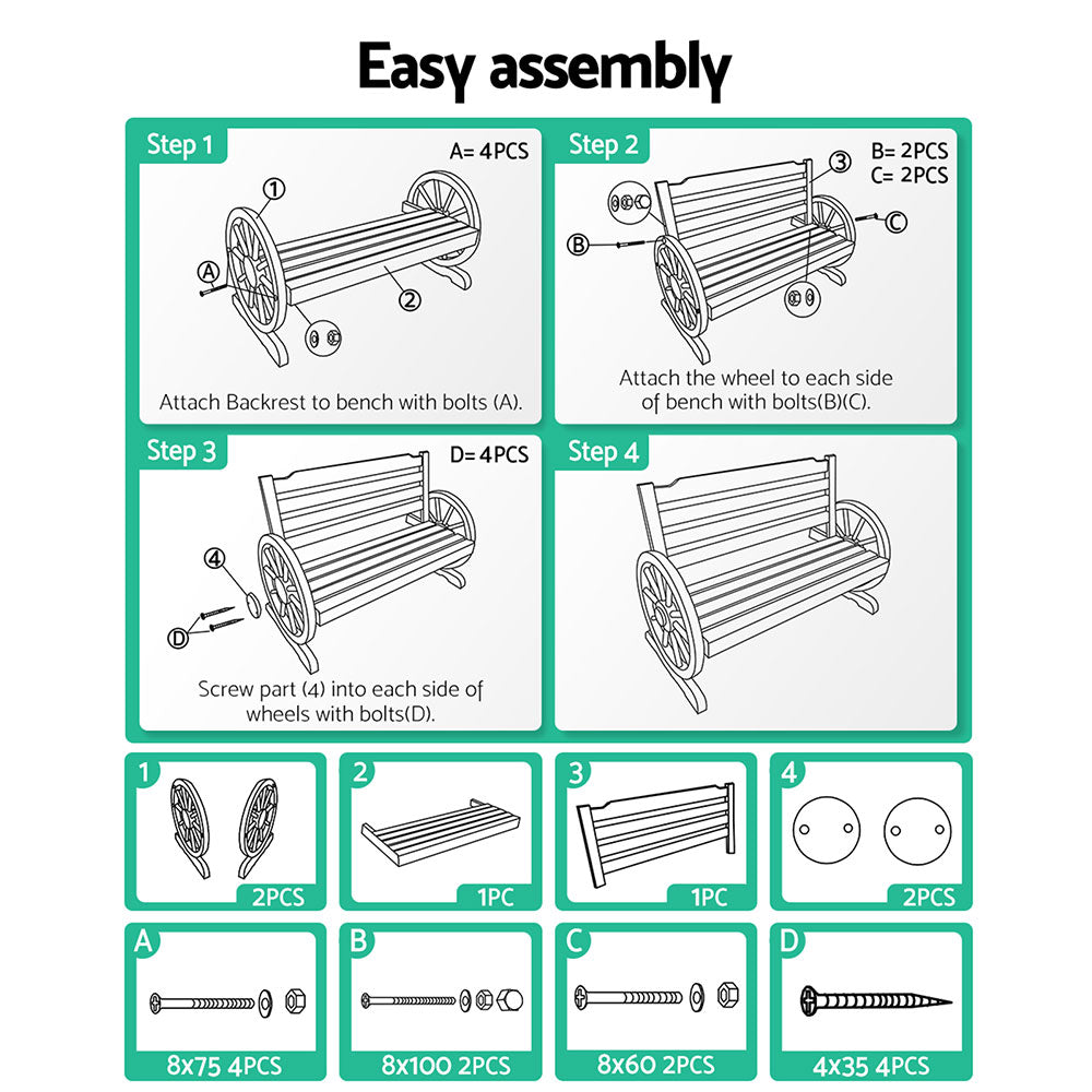 Gardeon Park Bench Wooden Wagon Chair Outdoor Garden Backyard Lounge Furniture