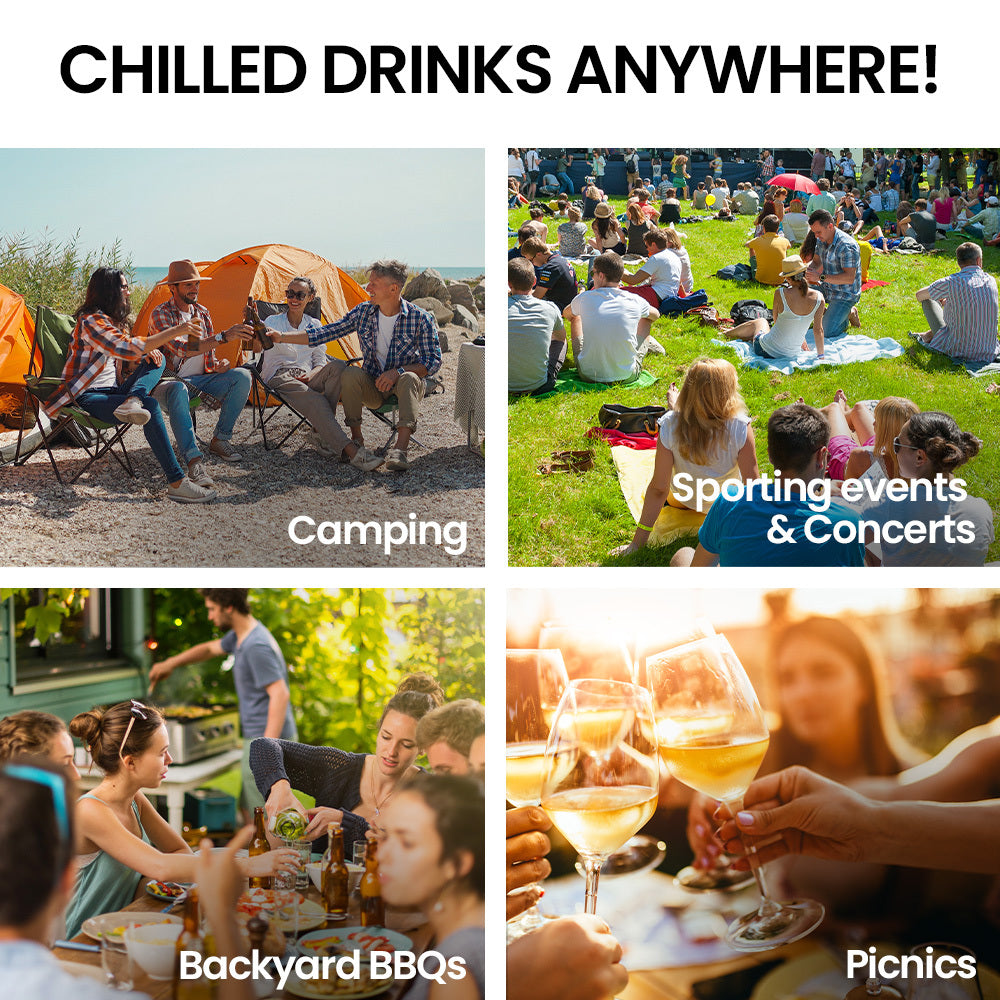 With a rechargeable 8-hour lithium-ion battery you can enjoy chilled drinks and fresh food at the beach, or beautiful camping and picnic locations. You can also ensure a steady supply of drinks for sporting teams and backyard BBQ’s without the hassle of buying bags of ice! The battery is removable for the option to conveniently charge elsewhere and has the latest safe charging technology.