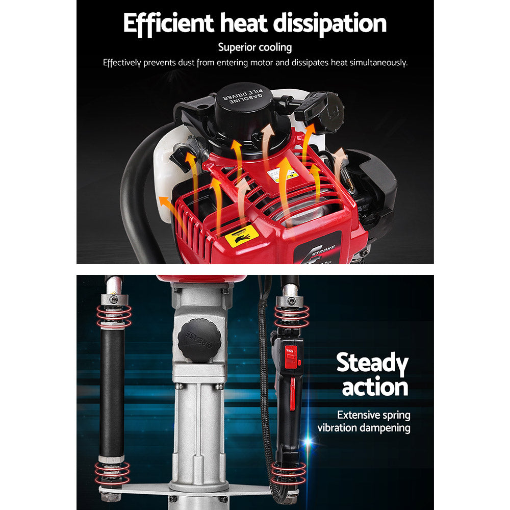 Giantz Petrol Post Driver 4-Stroke Rammer Pile Star Picket Fence Hole Drive Red