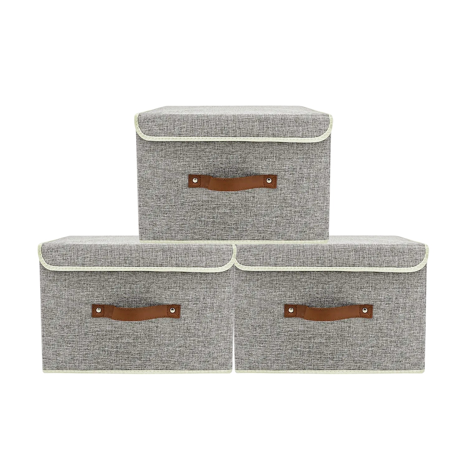 DUST PROOF & EASY TO MOVE: These fabric storage boxes are exquisitely crafted, durable, and equipped with well-made lids to protect your personal belongings from dust. Sewn with an easy-to-grip leather handle, the sturdy handle is designed to be easy to lift and move.
