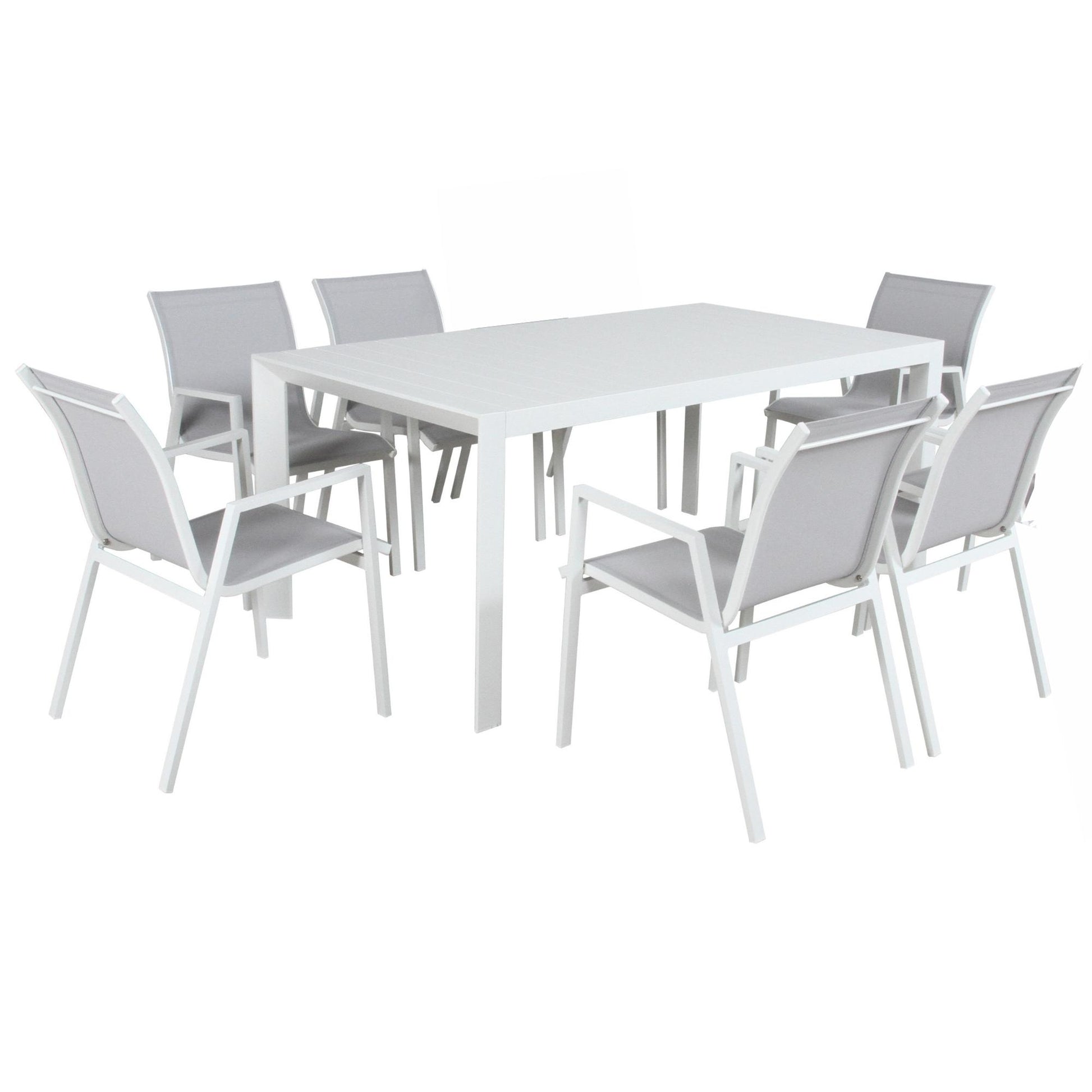 Iberia 7pc Set 178cm Aluminium Outdoor Dining Table Chair White