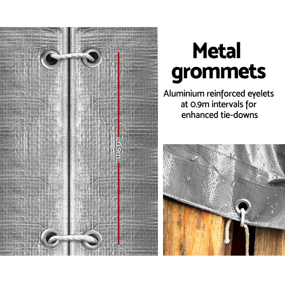 Instahut 9x12m Tarp Camping Tarps Poly Tarpaulin Heavy Duty Cover 180gsm Silver