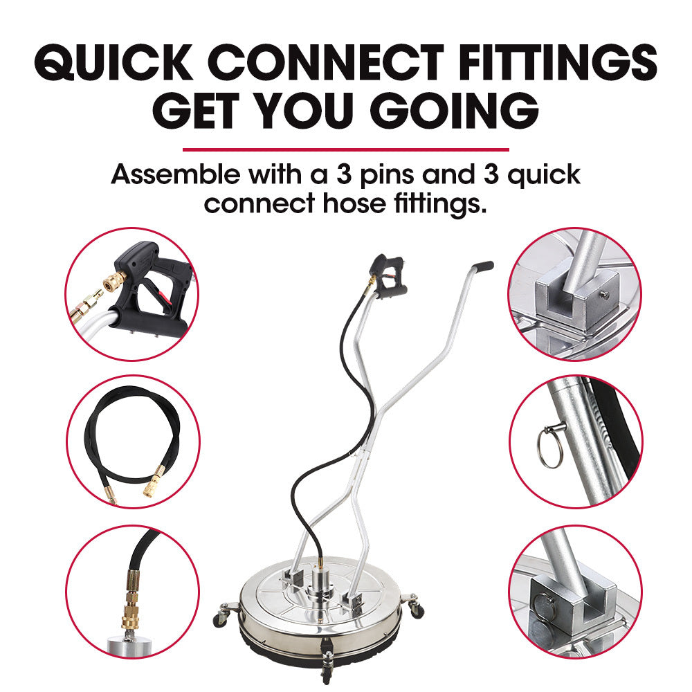 Jet-USA 24" Stainless Steel Pressure Washer Surface Cleaner, 3/8" Fitting, with Yoke Handlebar, For Concrete Driveway Patio Floor