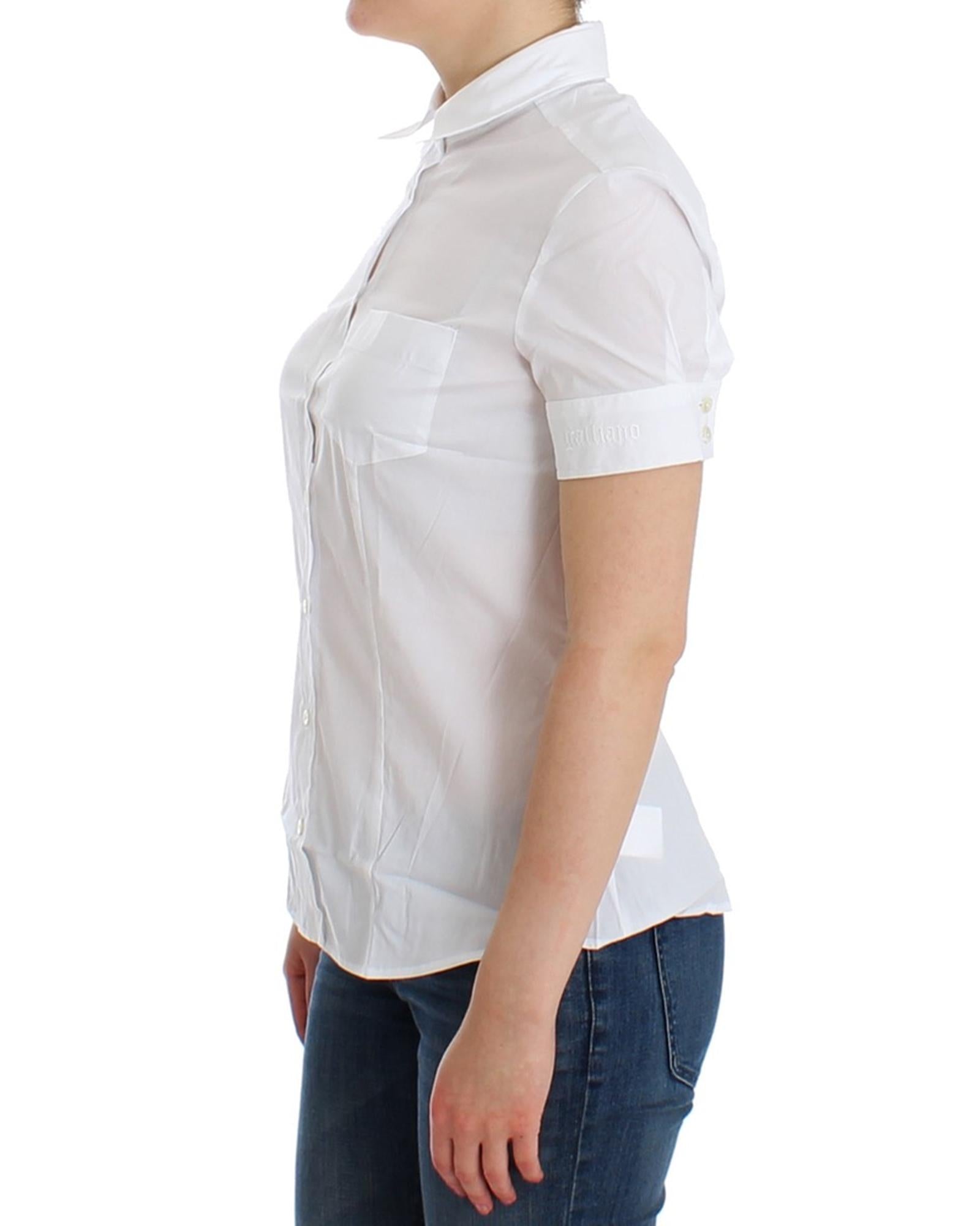 John Galliano White Cotton Stretch Shortsleeve Shirt Top 42 IT Women