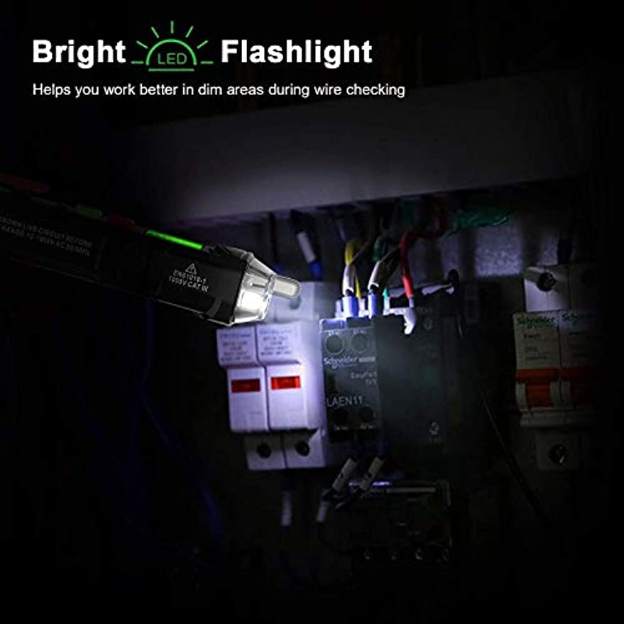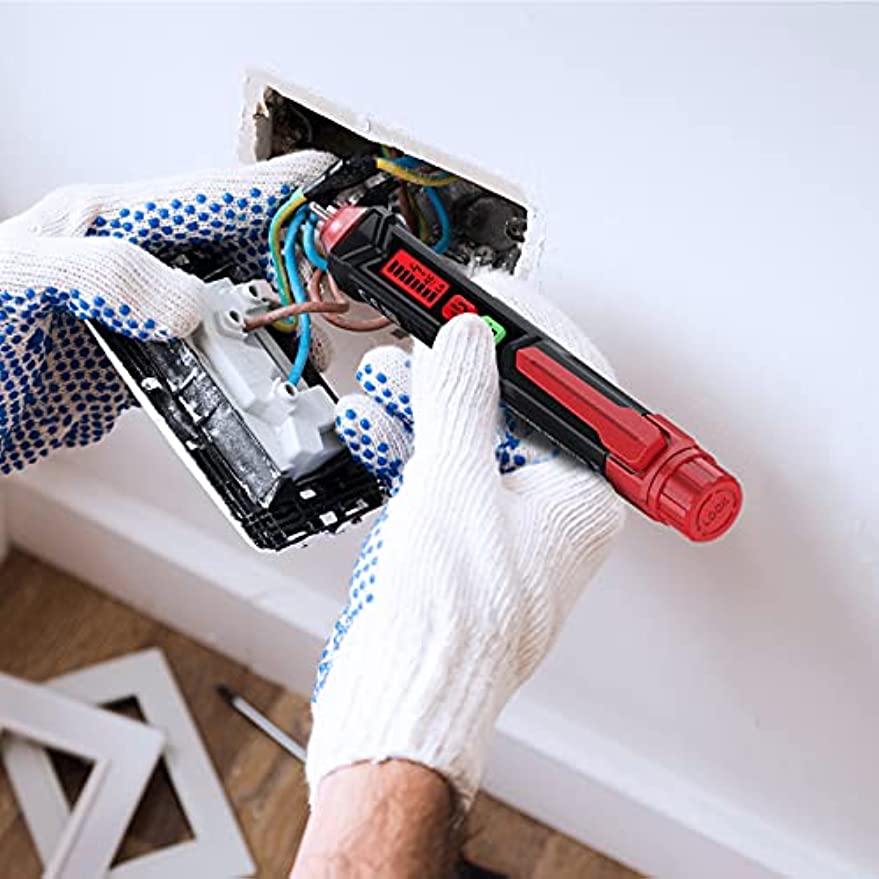 - NON-CONTACT: With NCV inductive probe for AC voltage; Just place the tip near a terminal strip, outlet, or supply cord. When the tip glows red and the pen beeps, you know there's voltage present. The live wire detector can automatically detect the live or neutral wire. Ideal for breakpoint Test. Handy circuit tester for electricians, homeowners.