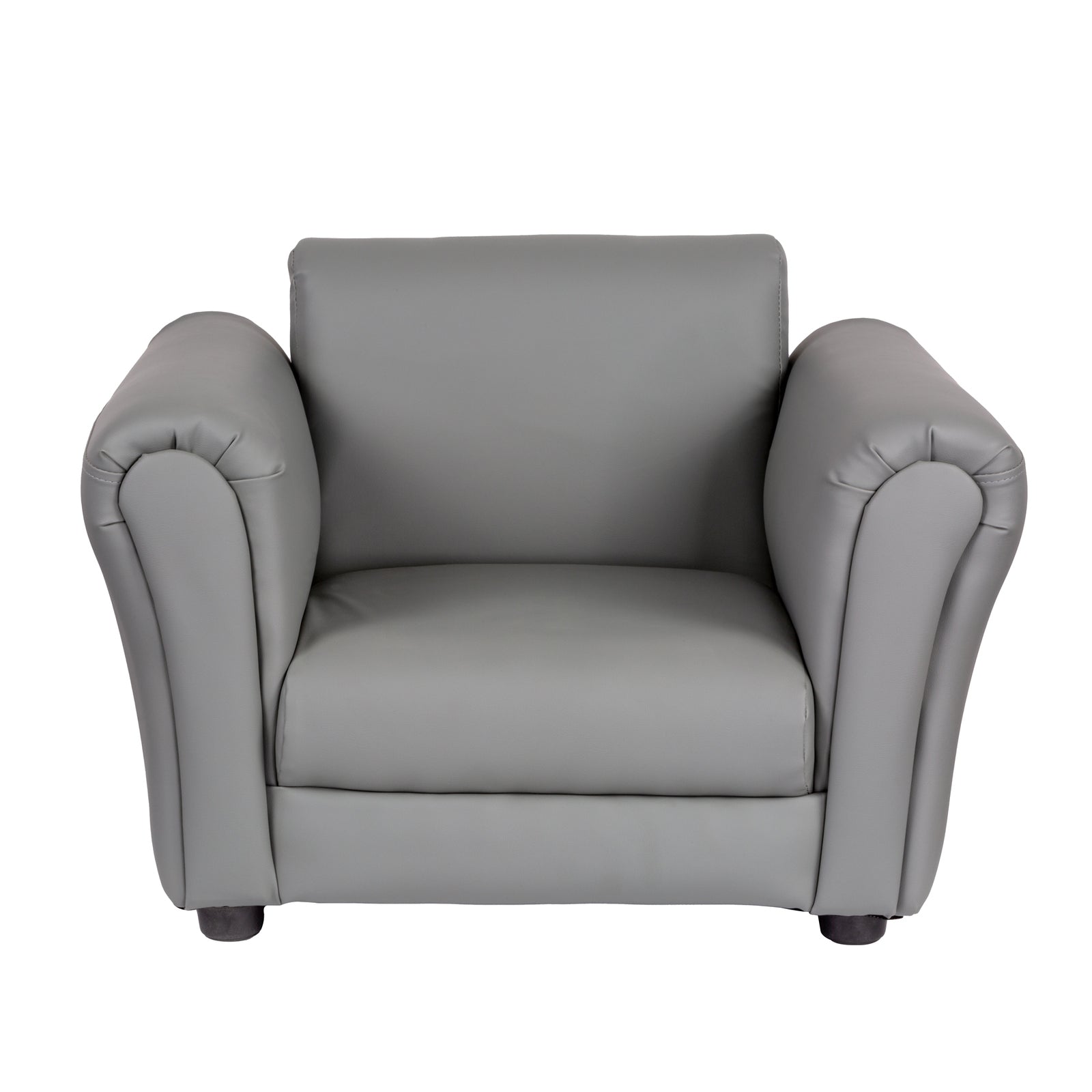Kids Grey Couch Sofa Chair w/ Footstool in PU Leather