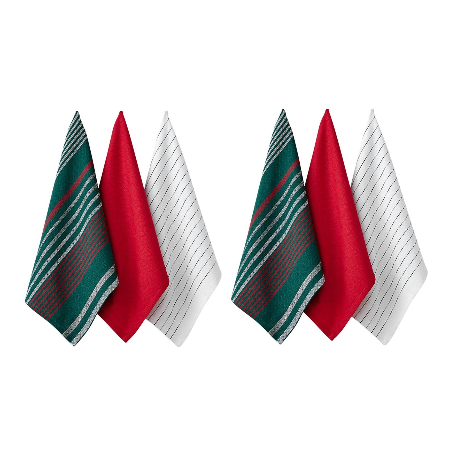 Ladelle Set of 6 Christmas Brick Cotton Tea Towels Design 3