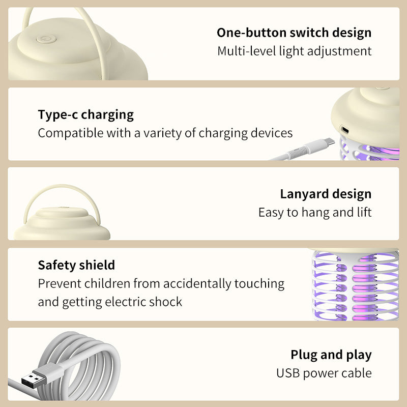 In addition to its primary function as a mosquito killer, this lamp doubles as a night light or camping light. Its gentle illumination creates a cozy atmosphere and serves as a practical lighting solution for various occasions.
