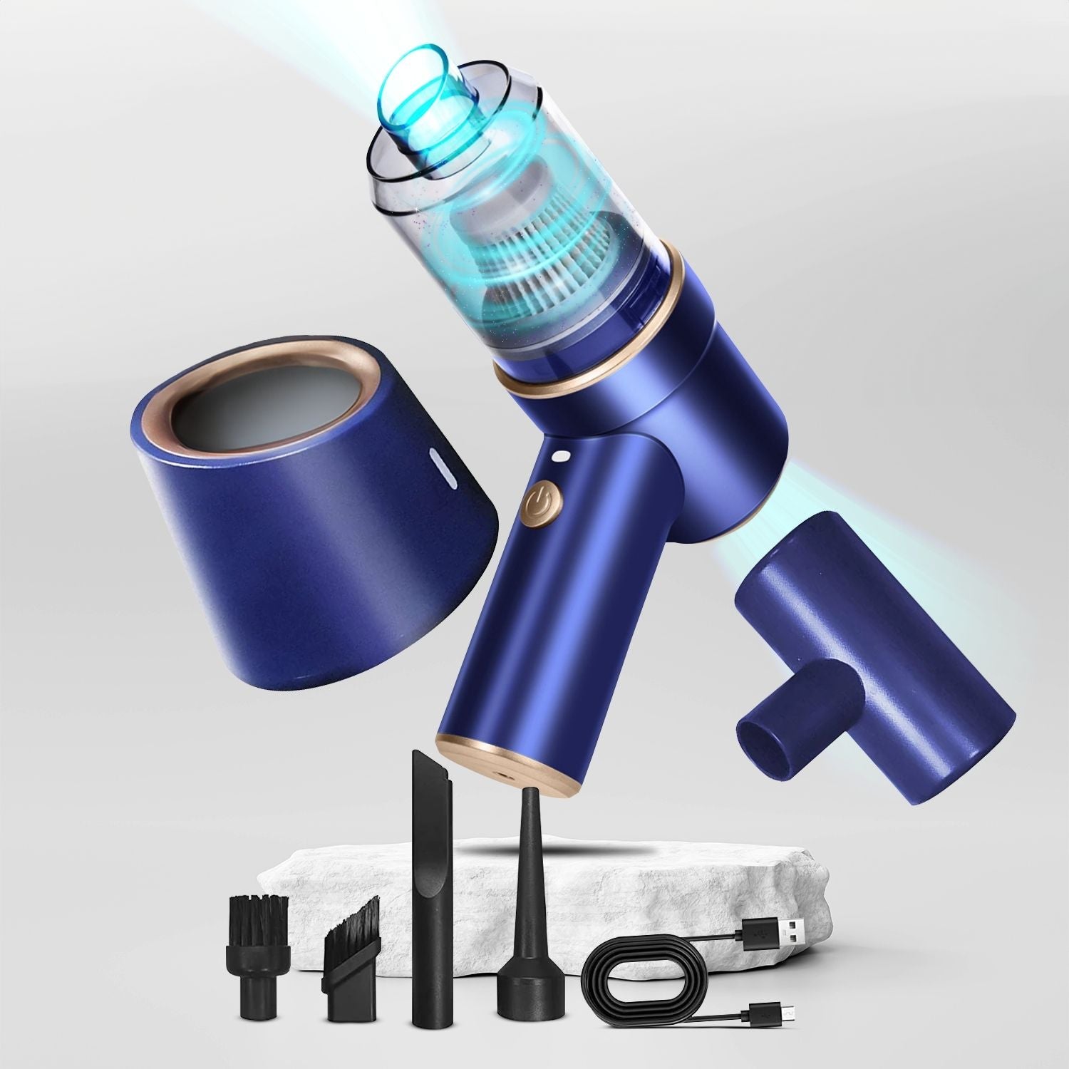 MIRAKLASS 45000RPM 7.8V Rechargeable Cordless Air Duster and Car Vacuum Cleaner with Charging Base (Navy Blue) MK-AD-104-YE