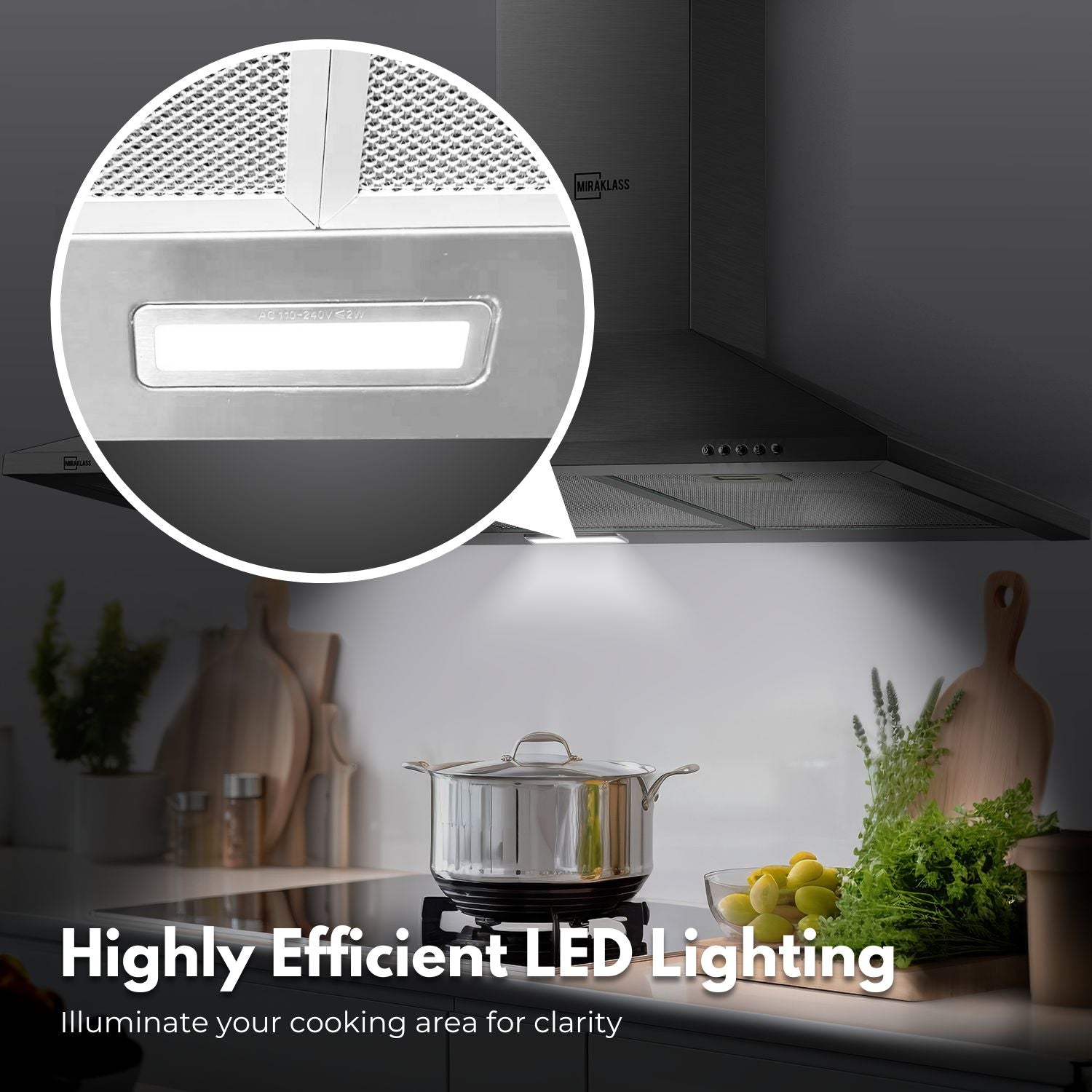 Bright LED light: Our rangehood is equipped with a bright LED light, providing efficient and clear illumination for your cooking area. This feature enhances visibility, making it easier to monitor your cooking and create a well-lit kitchen environment.