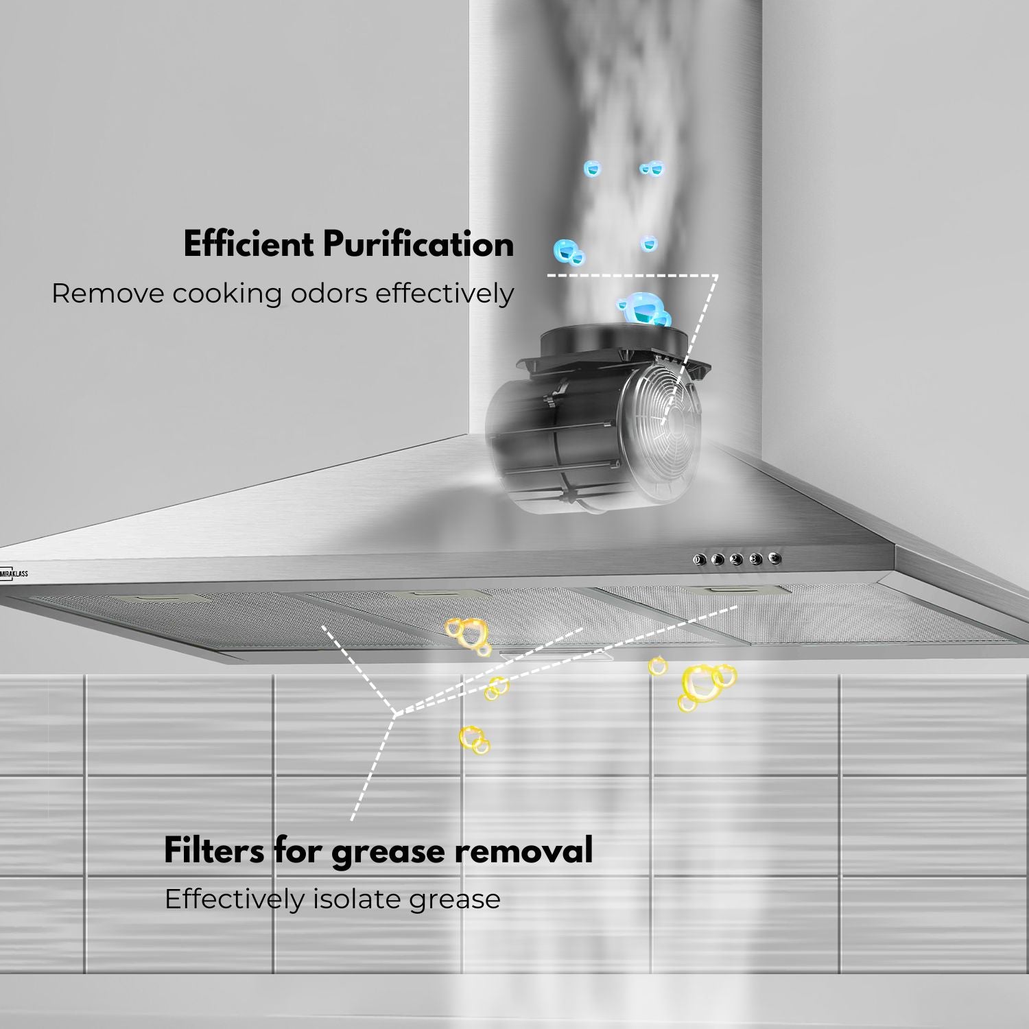 Rust-Resistant Stainless Steel: Our rangehood boasts a robust stainless steel body, providing not only a sleek aesthetic but also ensuring long-lasting durability with anti-rust properties.