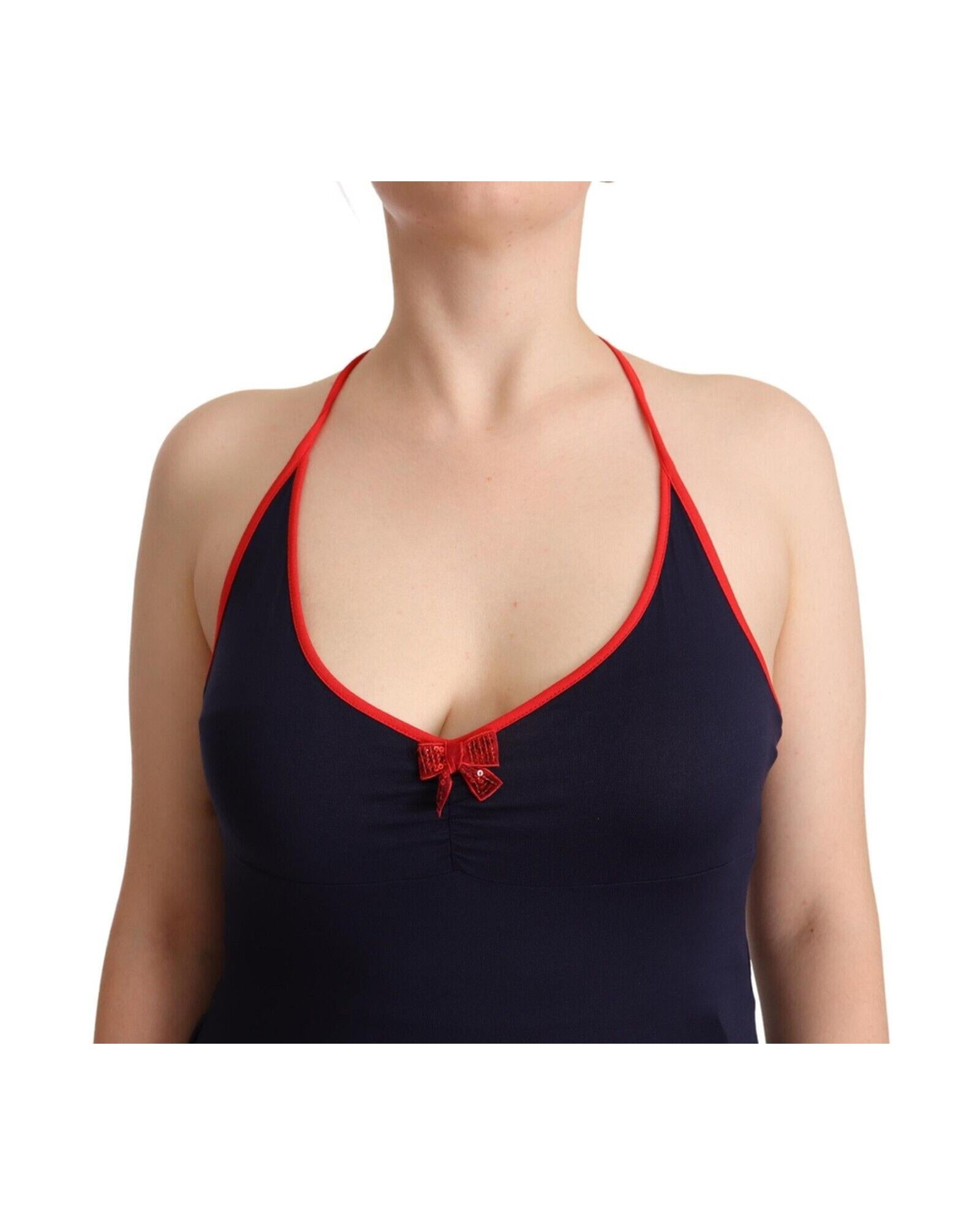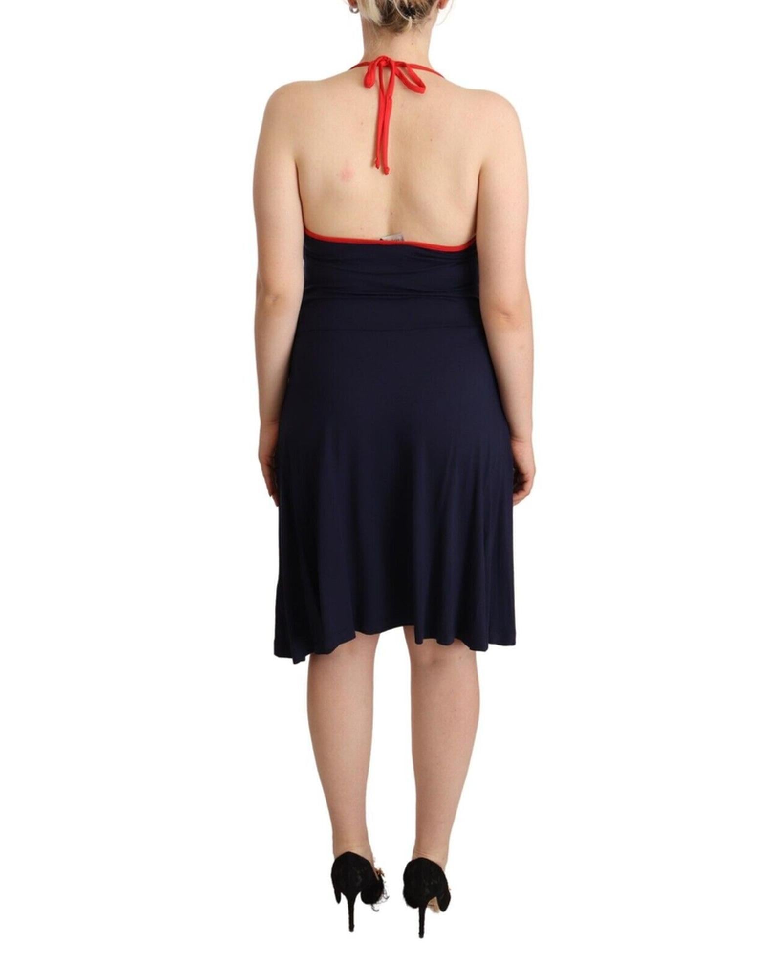 Navy Blue Cotton Halter String Closure Midi Dress 44 IT Women