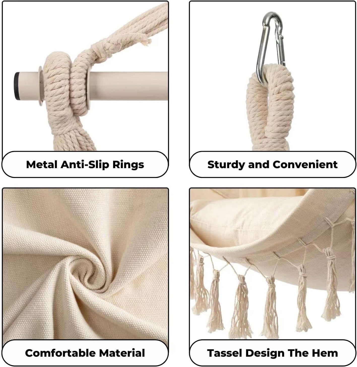 NOVEDEN Hammock Chair Hanging Rope Swing with 2 Seat Cushions Included (Beige)