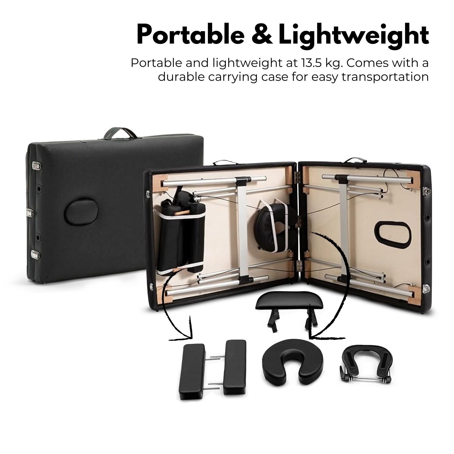 Portable and Lightweight: The massage table easy to move around if you're a traveling esthetician or massage professional! This massage table about 17.5KG. Portable massage table includes a durable carrying case.