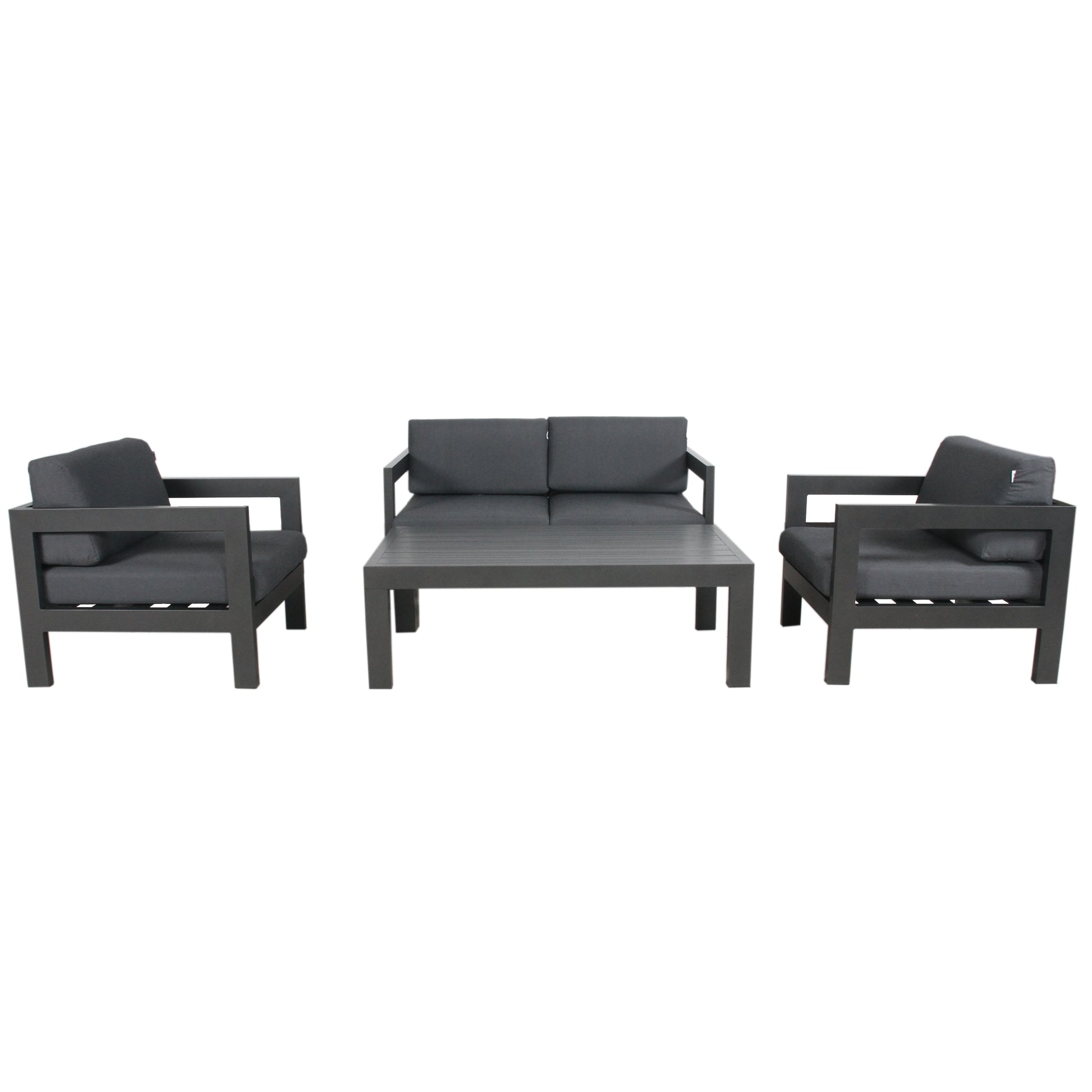 Outie 4pc Set 1+1+2 Seater Outdoor Sofa Lounge Coffee Table Aluminium Charcoal
