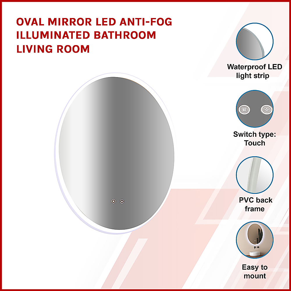 Oval Mirror LED Anti-Fog Illuminated Bathroom Living Room