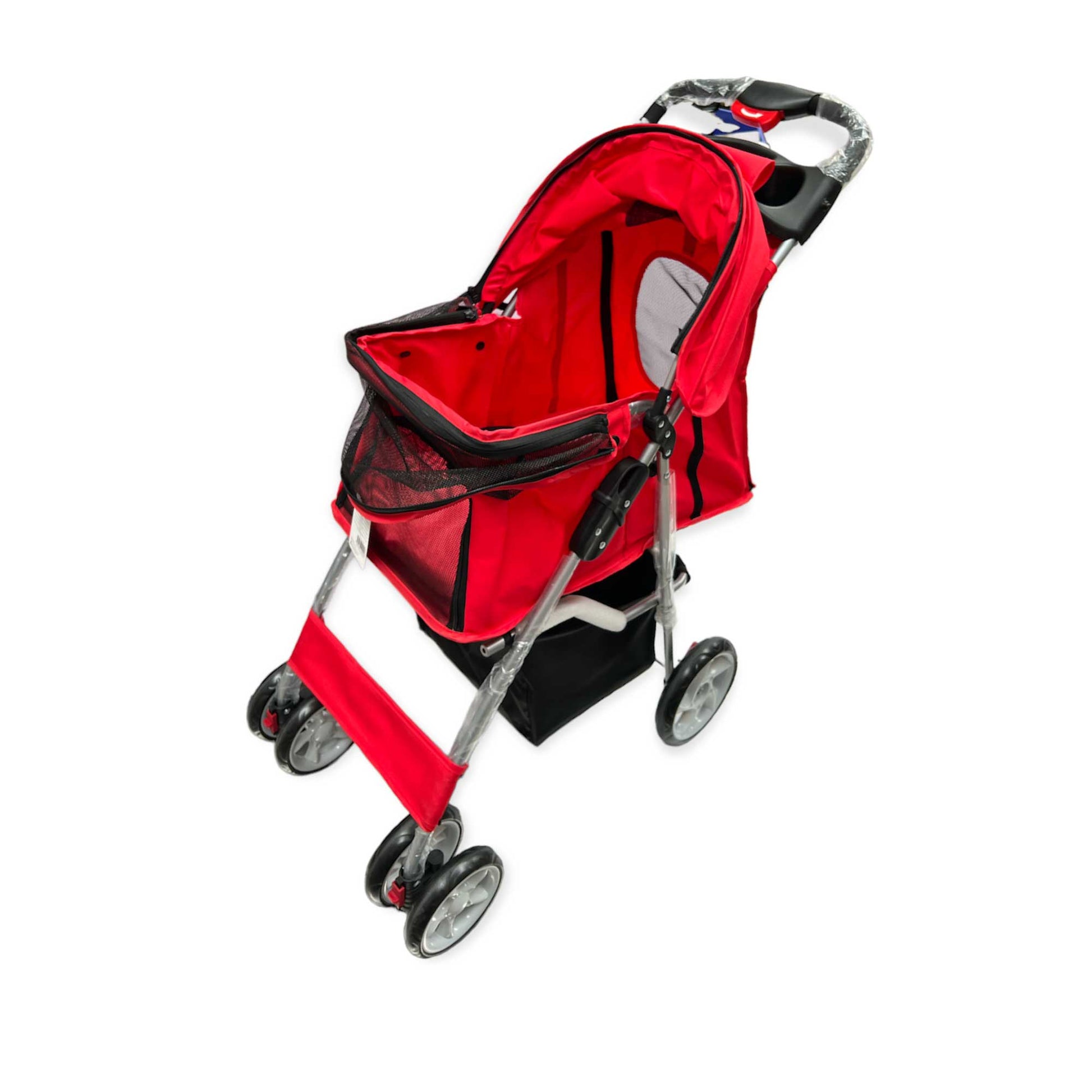 Pet Stroller Pram - Dog or Cat Red 4 Wheeled Folding Travel Buggy Pushchair