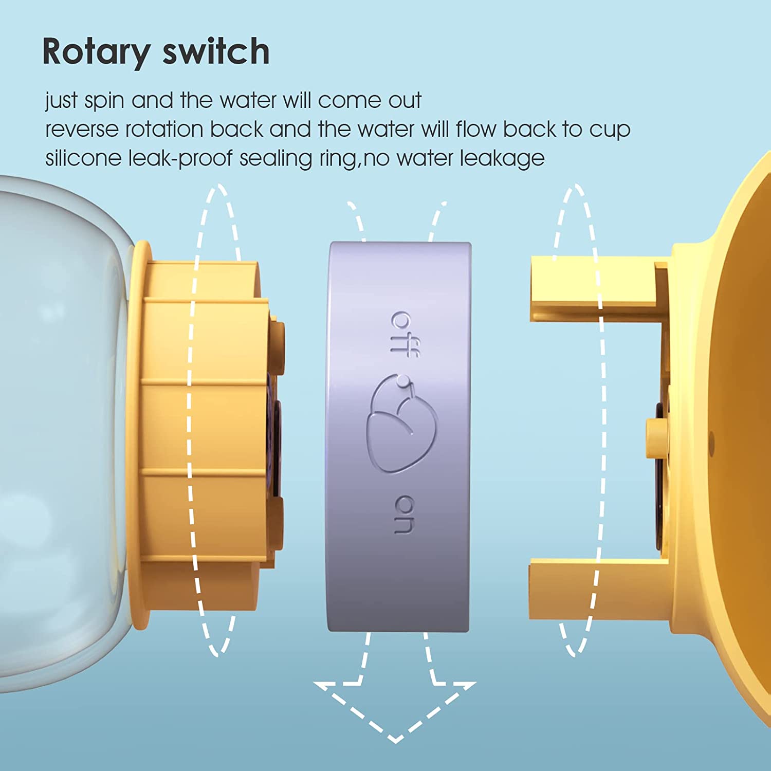 Wide Opening and Easy to Use: 10cm wide opening, more in line with the dog mouth structure. Also compared to the key switch on the market, dog travel water bottle can be controlled by the rotary switch.