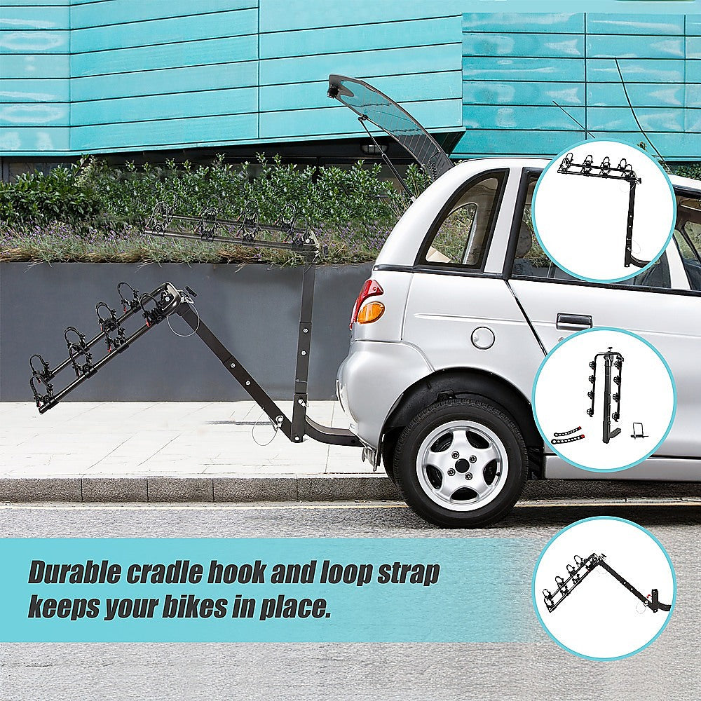 Premium 4-Bike Carrier Rack Hitch Mount Swing Down Bicycle Rack W/ 2" Receiver