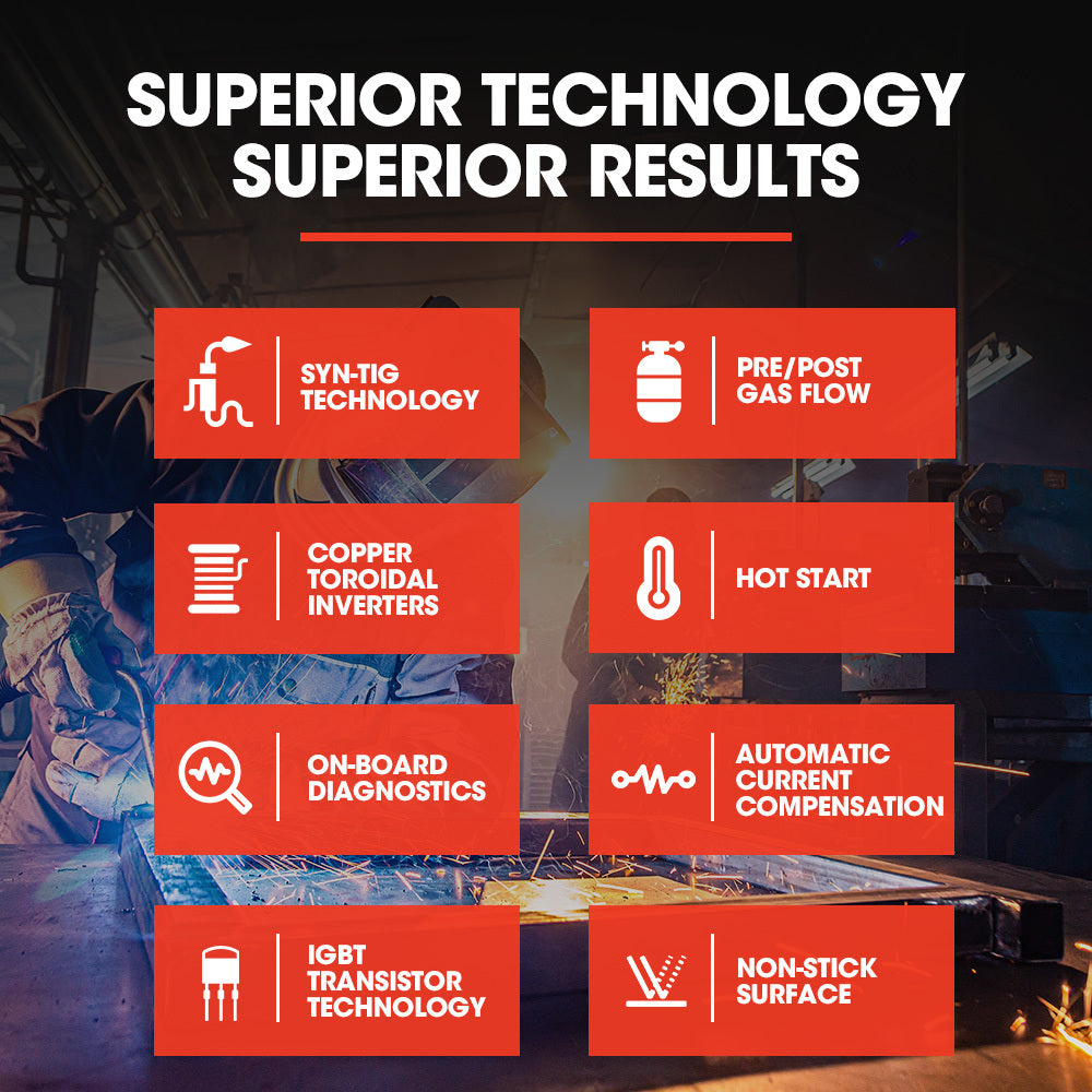 When TIG welding you can achieve highly aesthetic welds thanks to precise temperature adjustment and the Post Flow Controller. When stick welding, this awesome unit is capable of running a wide range of electrodes, is well suited to stick welding thick metals outdoors and even in windy conditions, and is forgiving when working on dirty or rusty metals.