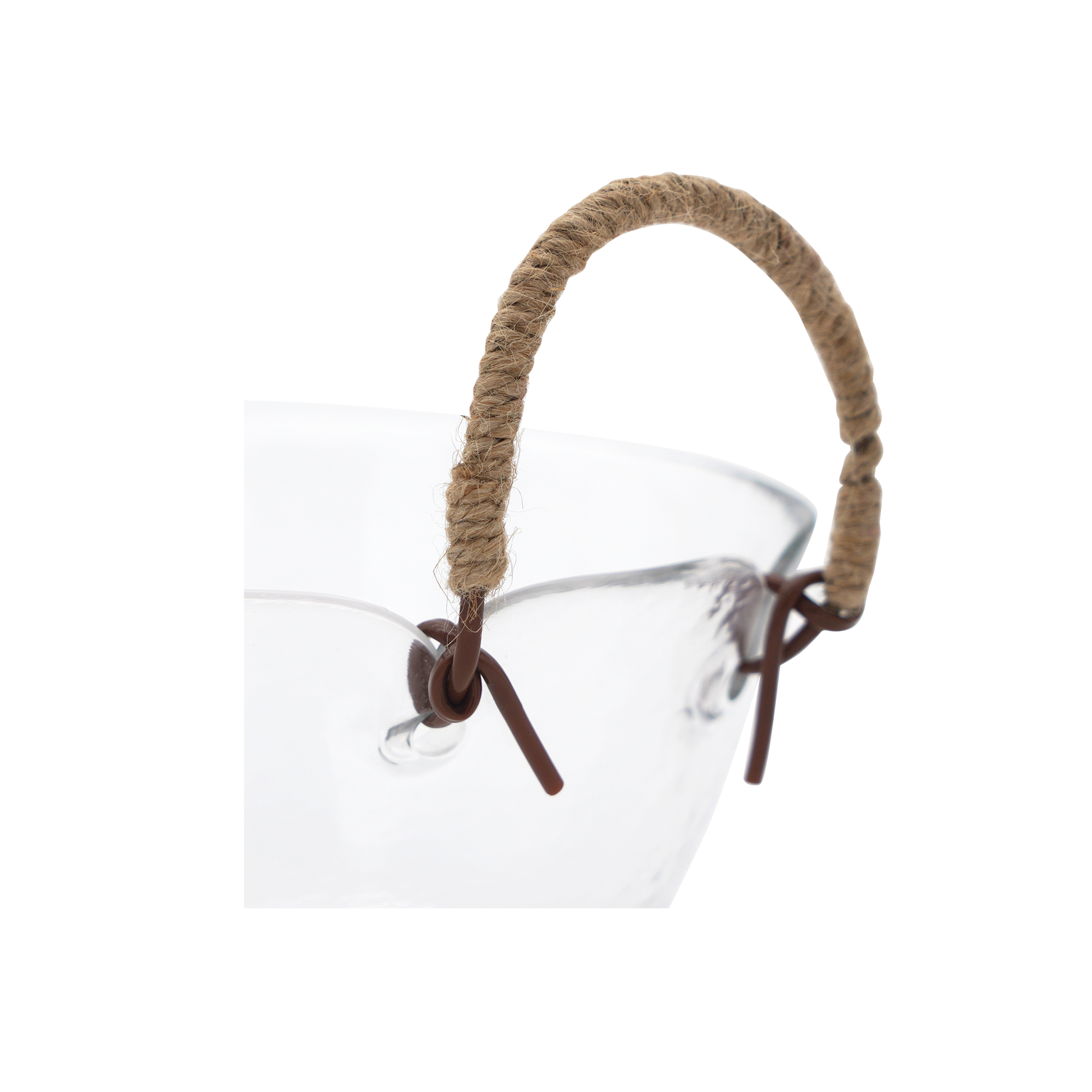 A rustic addition to any kitchen collection, this glass fruit bowls can be displayed on special occasions to serve fruit or sauces to be shared. Equally stunning on its own as a decorative piece, this salad bowl is crafted with the "balloton" technique with two leather handles wrapped with raffia, lending it its characteristic texture.