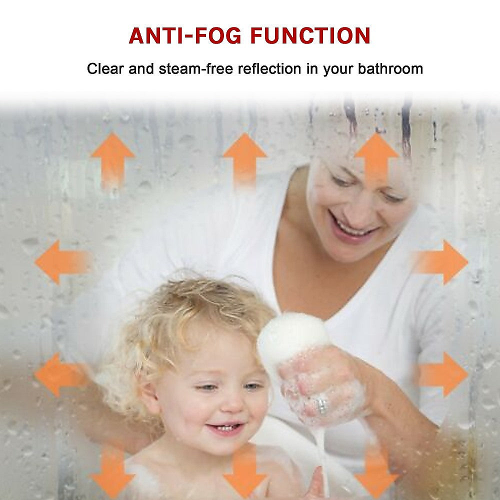 Simply press and hold the touchpad in the corner to change the brightness of the lights. Tap the button to toggle the lights on or off. The anti-fog technology means it will not be affected by condensation when you have a steamy shower.