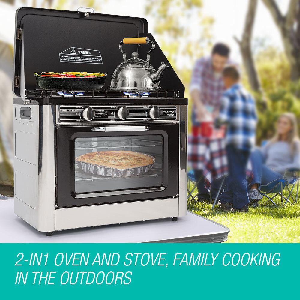 THERMOMATE 2 Burner Portable Camping Oven Cooking LPG Gas Stove Stainless Steel