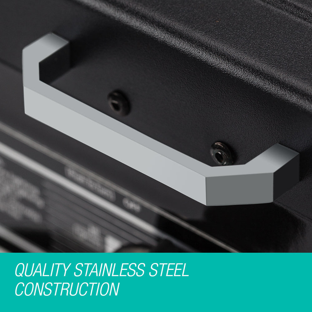 Made with quality stainless steel, you can be confident of the unit's durability. Featuring 5,300 BTU twin stove burners with non-stick enamel surface, a 3500 BTU oven with dual racks, removable oven thermometer and a bonus roasting tray, the Thermomate Outdoor Camping Oven has thoughtfully included everything you need to create a home cooked meal outdoors. The folding lid and arms will shelter heat from wind while cooking. Cleverly designed, it is powerful yet compact, weighing only 15kg, ensuring easy transportation and storage.
