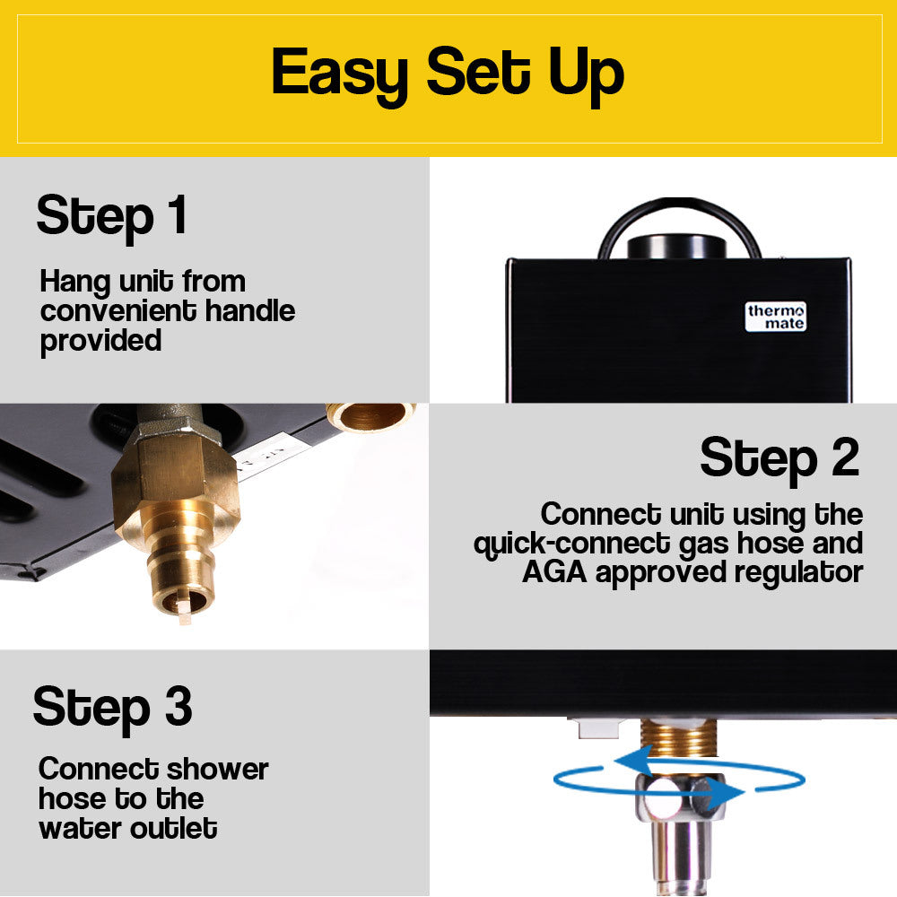 Thermomate Outdoor Water Heater Gas Camping Portable Tankless Hot Shower