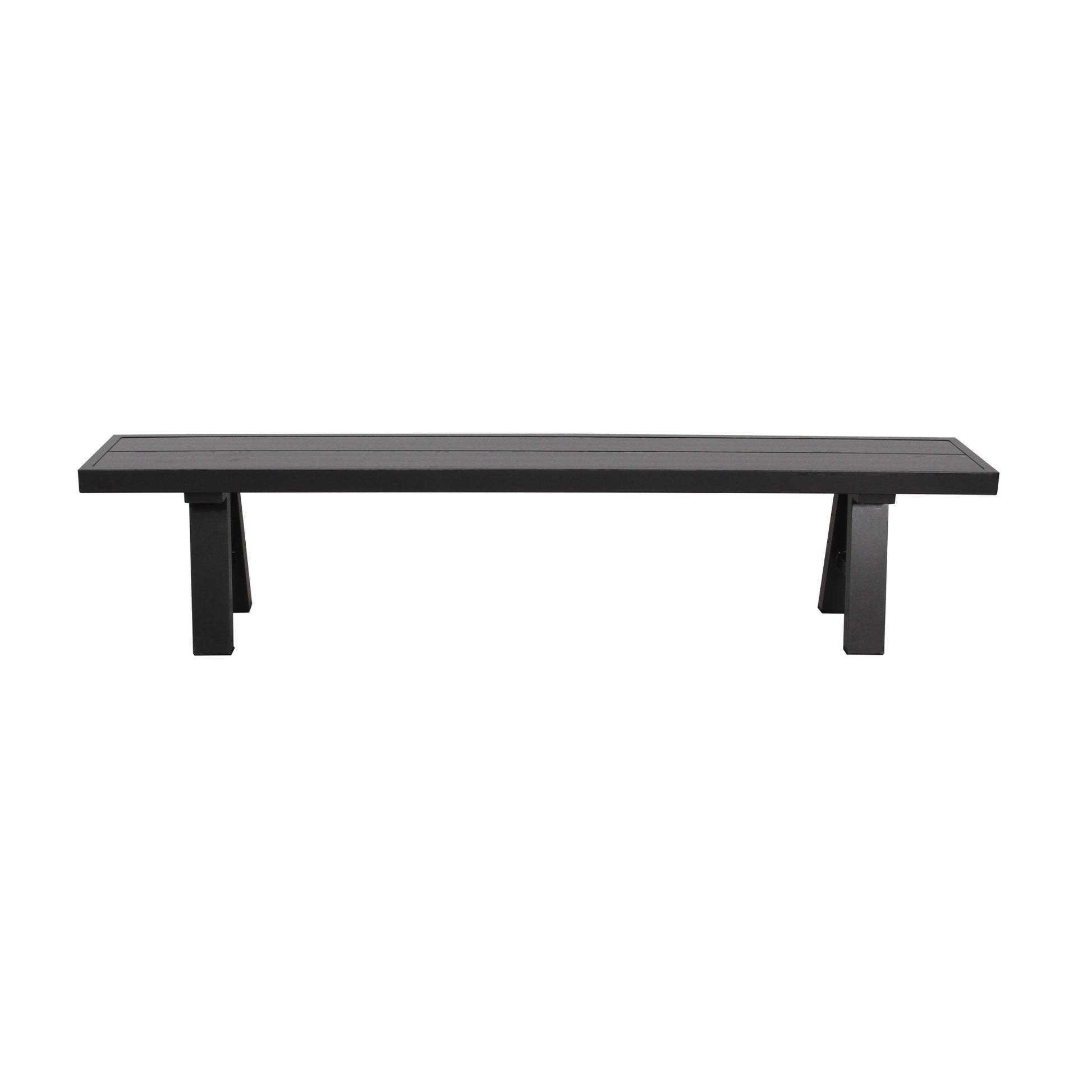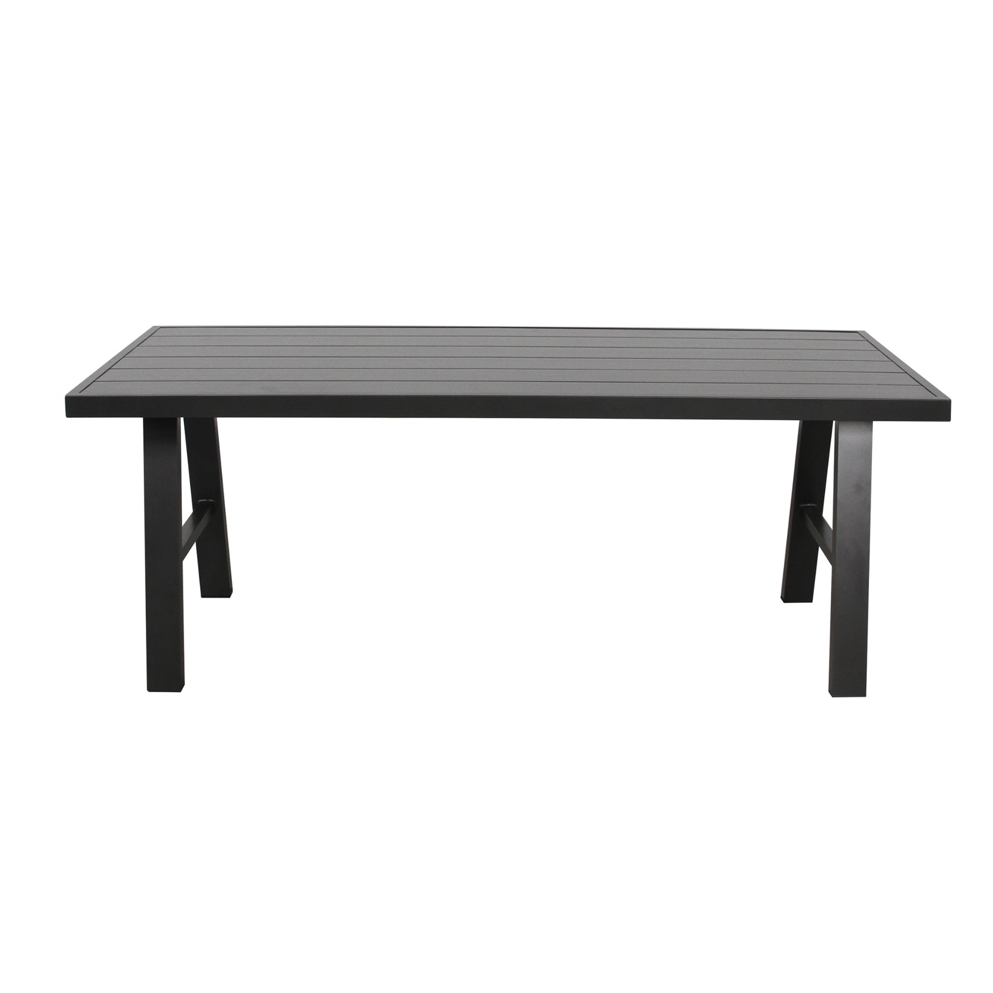 This is an all-weather 10-seater dining set, comprising 1 dining table and 2 benches, that is just perfect for outdoor dining. Ideal for medium to large outdoor areas, the dining set is made of aluminum, which is rust-free. The powder-coated aluminium frame provides durability and requires low maintenance. The metal ensures the strength and longevity of the set for years to come. The set is designed in a contemporary style that looks pretty in open areas and on lawns. The good-looking table and benches with slanted legs exude good vibes in the atmosphere due to their charcoal colour. The table and benches have sturdy legs, and they are easy to maintain. The table, with its aluminium slat tabletop, has a slatted top with plenty of leg room to outstretch and relax. The easy-to-assemble dining set comes with a one-year warranty.