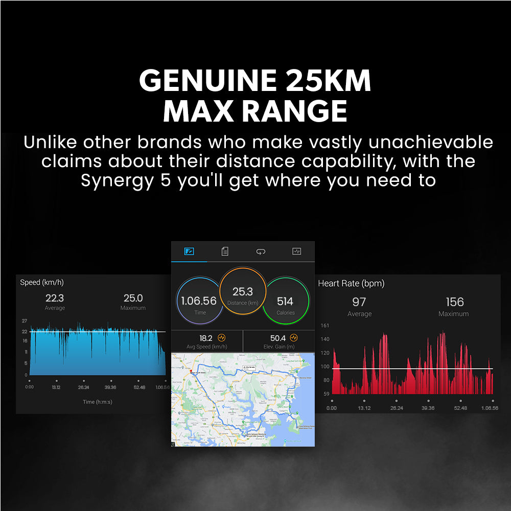 Battery technology quality varies significantly between brands of e-scooters. At the heart of the Synergy 5™ MKII is its premium-grade 37V 7.5Ah battery, which offers an impressive genuine range of up to 25km and an excellent cycle life!