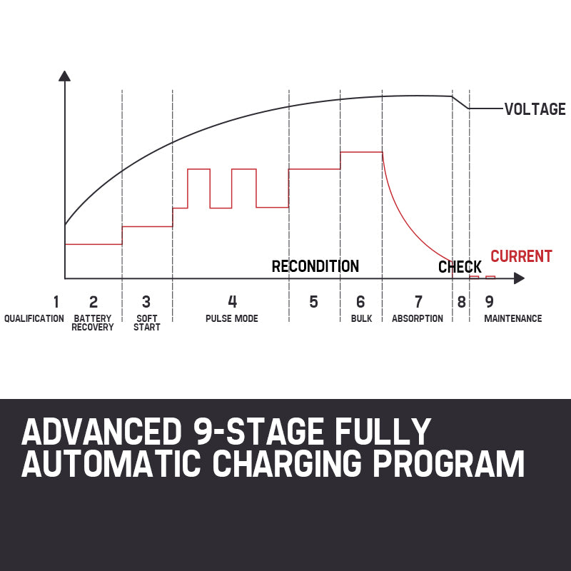 - Charging type: 9-step Fully Automatic Charging Cycle